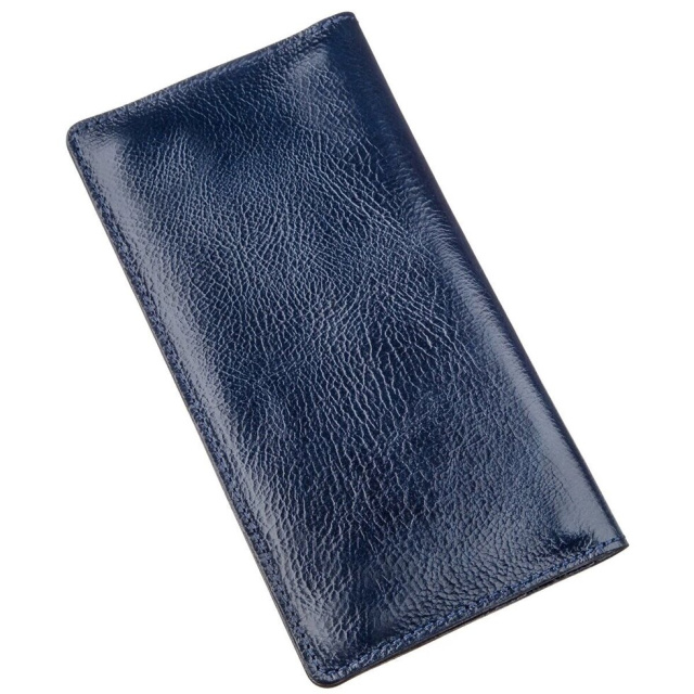 Солідний і м'який шкіряний гаманець стильного синього кольору. Аксесуар створений для людей, які цінують стиль і комфорт. Виріб прошито по краях рівним рядком. Доповнює аксесуар тиснений логотип бренду на лицьовій стороні аксесуара. Виріб закривається на дві кнопки зверху і знизу. Такий гаманець стане прекрасним помічником для свого власника.