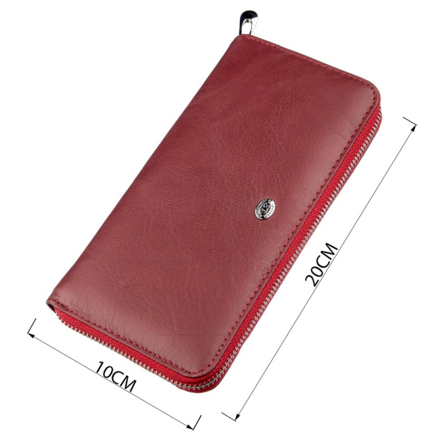 Чудовий жіночий клатч для розкішних і впевнених у собі особистостей. Зроблений з приємної і ніжної на дотик натуральної першокласної шкіри. Ну, а дивовижний червоний колір з нотками коричневого точно не залишить непоміченою господиню даного виробу. Якщо Ви не боїтеся стати центром уваги, то цей клатч саме для Вас! Наповнення даного гаманця представлено у вигляді відділень для купюр і кишень для візиток або пластикових карт, яких налічується аж тридцять шість. Також на зовнішній стороні клатчу є відділення на блискавці на всю висоту для монет або інших цінних дрібниць. Упакований гаманець в білу картонну коробку з логотипом виробника.