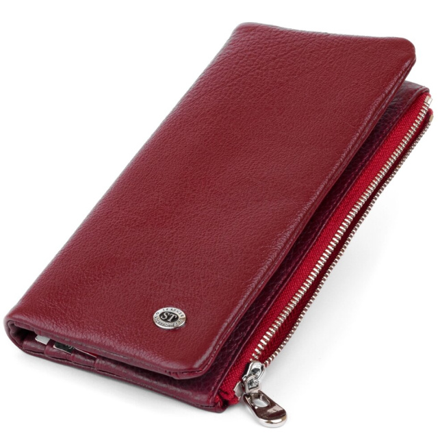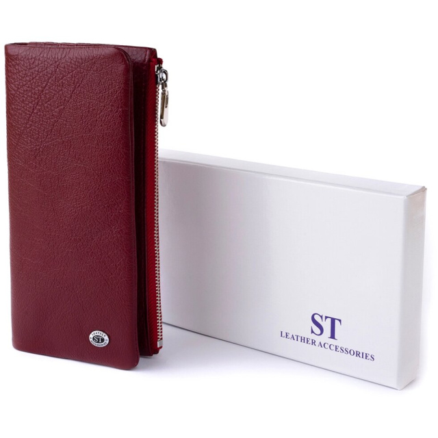 Гаманець вертикального типу з нової колекції. Колір - насичений бордовий. Матеріал виготовлення натуральна 100% шкіра. Усередині аксесуар має 3 кишені для купюр в розгорнутому вигляді, 12 слотів під пластикові картки. Зовні - бокова кишеня на блискавці, в який поміститься мобільний телефон невеликого розміру. Гаманець підкреслить ваше почуття стилю і відмінний смак. Зручно сидить в руці і прослужить вам далеко не один рік. Рекомендуємо вам дану модель в якості подарунка. У комплекті до гаманця йде фірмова коробка.