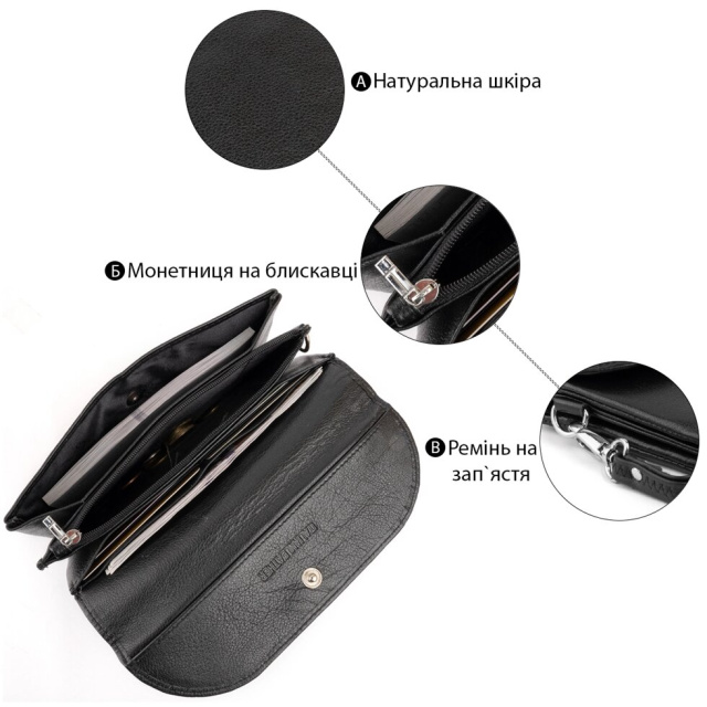 Місткий і стильний клатч з натуральної шкіри високої якості. Аксесуар ідеально підійде на вечірку. Модель оптимального розміру і носиться як в руках, так і на зап'ясті. Шкіра має природну текстуру і легкий запах. На лицьовій стороні металевий логотип бренду. У клатч з легкістю поміститься мобільний телефон і документи. Аксесуар в гладку шкіру. Місткі кишеньки зручно розмістять всі ваші особисті речі. Внутрішнє оздоблення: поєднання щільного чорного текстилю та натуральної шкіри. Аксесуар упакований в фірмову коробку. Клатч стане найкращим подарунком для будь-якої дівчини і найголовніше необхідним.