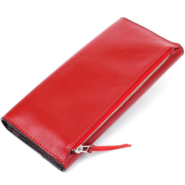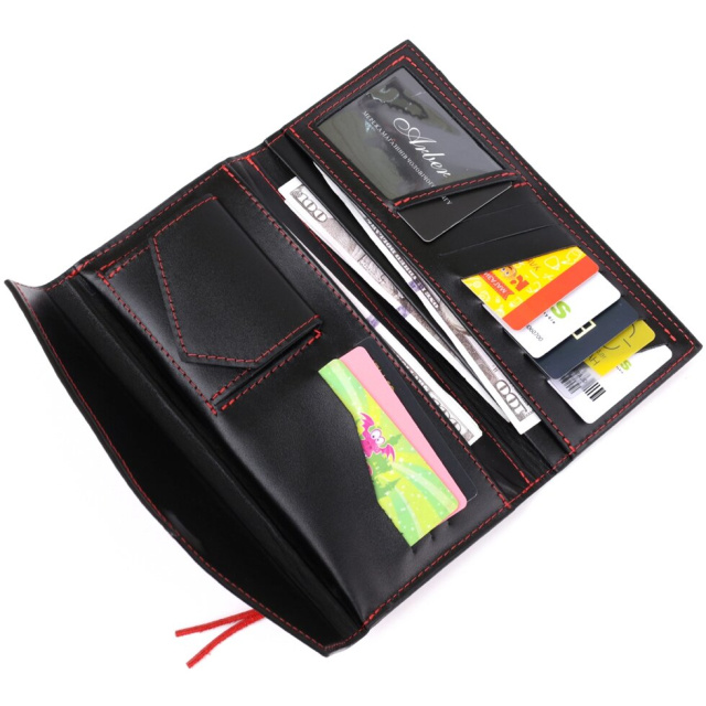 Жіночий практичний гаманець з добре продуманим дизайном від українського виробника. Має гарний і оригінальний зовнішній вигляд, завдяки скошеного клапану з прихованим магнітом. Всередині є місткі відділення для купюр, монет, різних карт і інших цінних паперів. Матеріал виготовлення - натуральна шкіра високої якості. Упакований аксесуар в фірмовий чорний чохол.