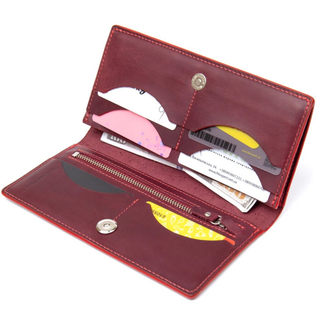 Практичне шкіряне портмоне високої якості виконання і матеріалів. Фактура виробу - вінтажна, що стало трендом в сучасному світі моди. Усередині представлено функціональне наповнення у вигляді відділень для купюр, монет та інших дрібниць, а також для кредитних карт. Цей виріб стане незабутнім подарунком для коханої людини.