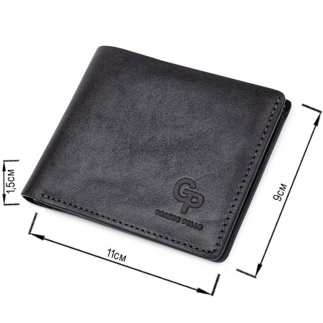 Класичне чоловіче портмоне невеликого розміру в глянцевій гладкій фактурі. Матеріал виготовлення - натуральна зносостійка шкіра високої якості. Всередині є відділення для купюр, слоти для пластикових карт і візиток, а також монетниця на кнопці. Упаковано виріб в фірмовий ущільнений чохол.
