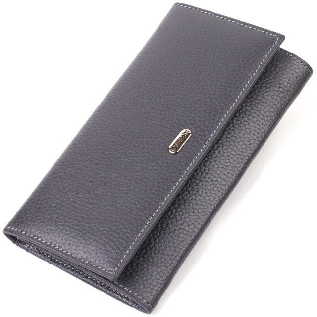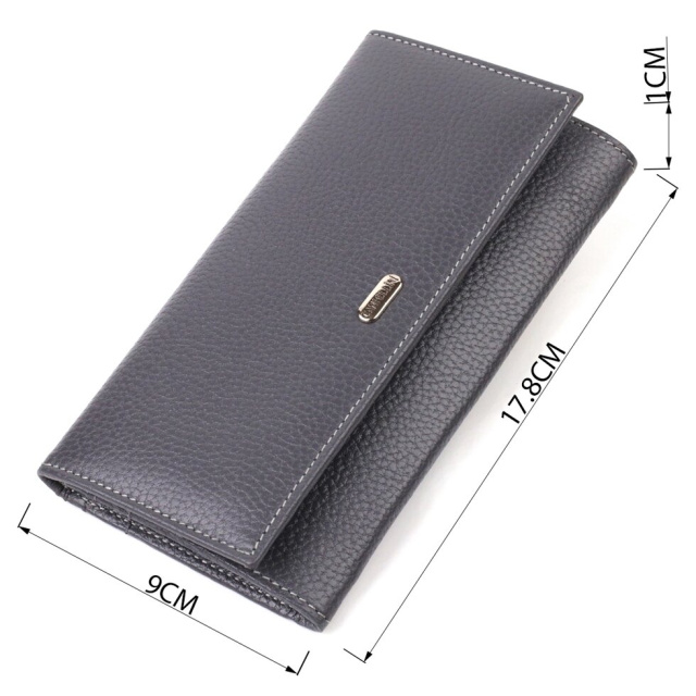 Красивий жіночий гаманець горизонтального типу із натуральної шкіри. Аксесуар має одне основне відділення, шість кишень для карток (одна під сіточкою), одна прихована кишеня, три прилеглі кишені та монетницю. Закривається аксесуар клапаном на кнопку. Купуючи шкіряний аксесуар цієї фірми, собі чи на подарунок, будьте певні, що він прослужить Вам не один рік.