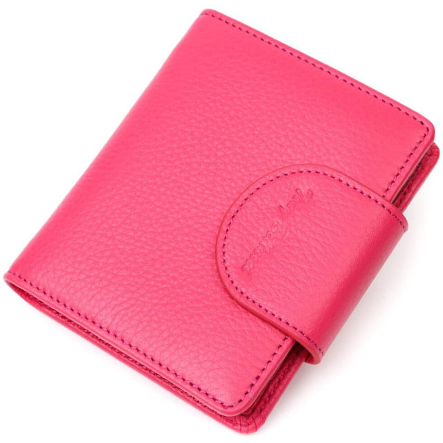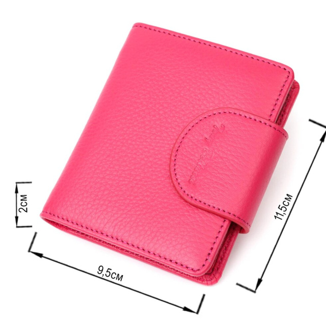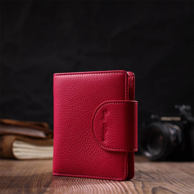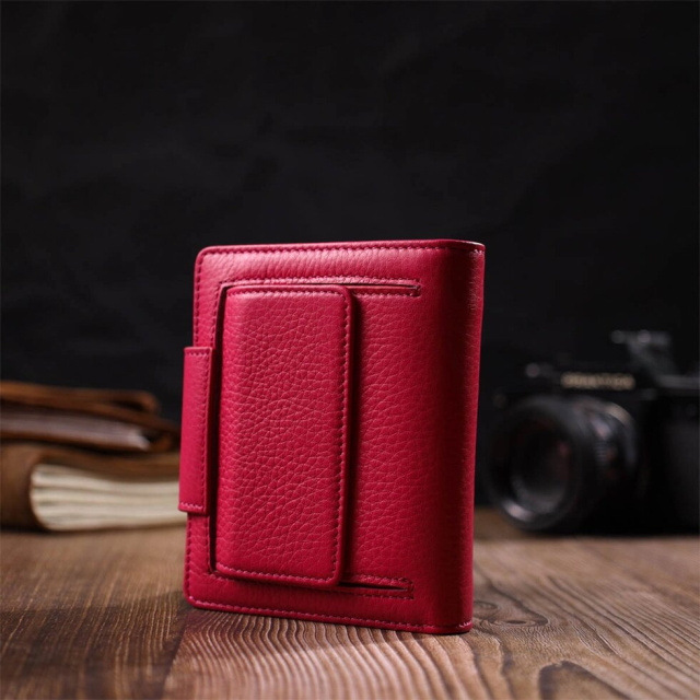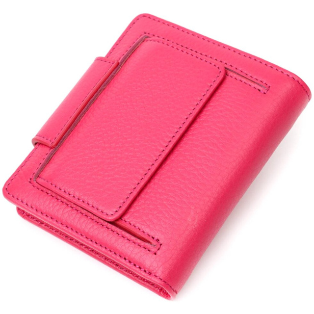 Неперевершений місткий жіночий гаманець із натуральної шкіри. Аксесуар складається з двох широких відділень для купюр, дев'яти осередків для пластикових карток, двох прилеглих кишень, кишені під сіточкою та монетниці під клапаном зовні. У виробі використано якісну фурнітуру золотистого кольору. Закривається гаманець шкіряним хлястиком на кнопку. Купуючи цей шкіряний гаманець, Ви не тільки набуваєте стильної речі, але й отримуєте якісний аксесуар, який прослужить не один рік.