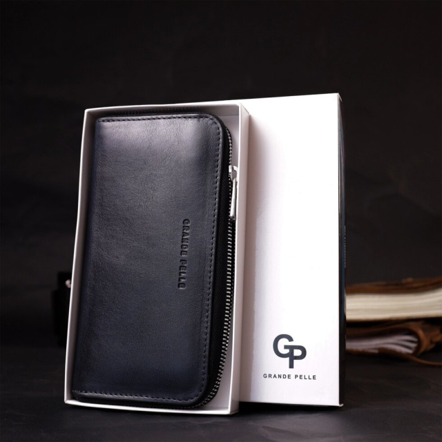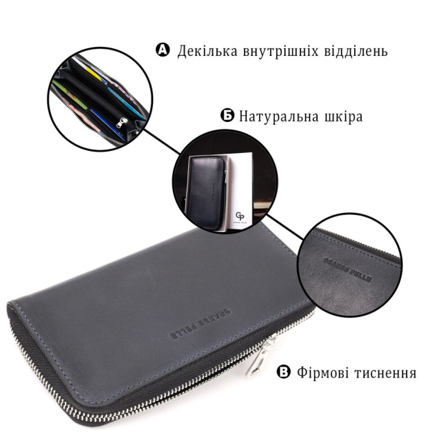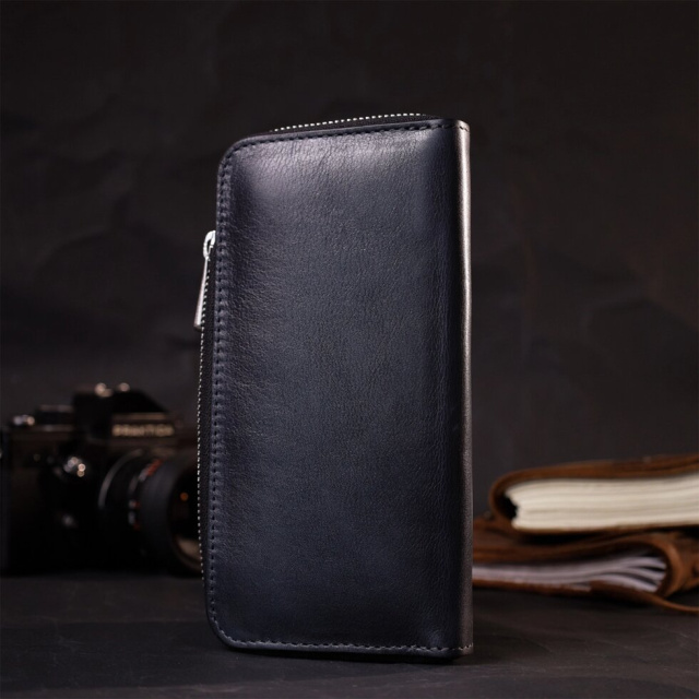 Якісний гаманець-клатч із висококласної натуральної шкіри, яка стійка до зносу. Поверхня гладка трохи блищить і переливається. Усередині є чотири місткі відділення, дванадцять кишень для візитних та кредитних карток та монетниця на блискавці. Запакований аксесуар у фірмову картонну коробку. Відмінний гаманець, який стане ідеальним подарунком для близької людини.