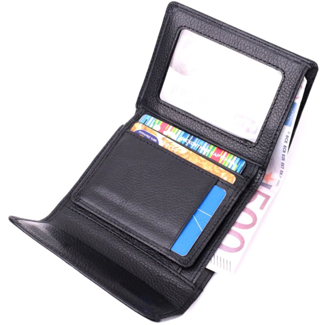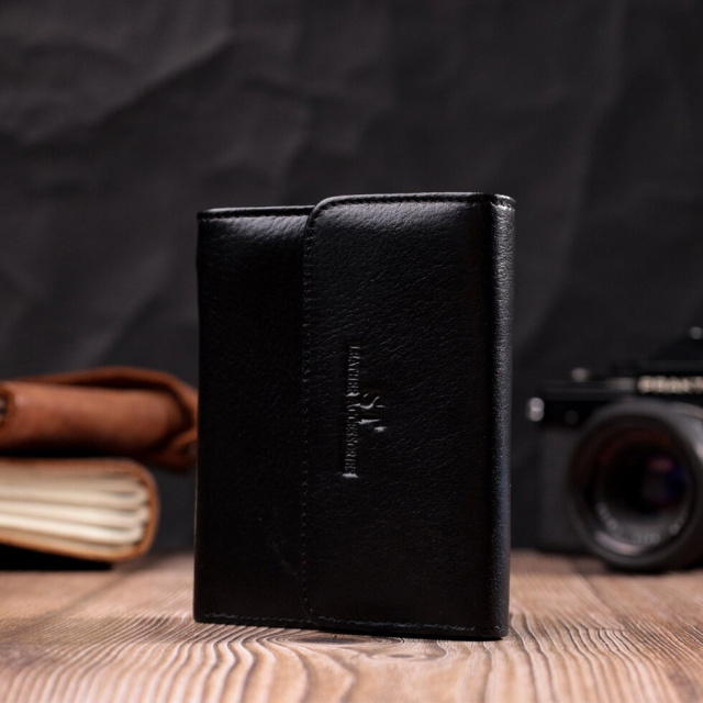 Місткий гаманець середнього розміру з натуральної шкіри найвищої якості. Аксесуар складається з одного місткого відділення для купюр, кишені на блискавці через всю довжину, шести осередків для карт, чотирьох прихованих кишень, кишенька під плівкою та зовнішньої кишені на блискавці, що чудово прослужить для монет. Зовні виріб прошитий рівним рядком по краю і прикрашений тисненим логотипом компанії виробника, який розміщений на клапані посередині. Портмоне доповнено надійною фурнітурою та міцною підкладкою. Укомплектований гаманець у фірмову картонну коробку білого кольору. Виріб стане ідеальним подарунком для дівчини будь-якого віку.
