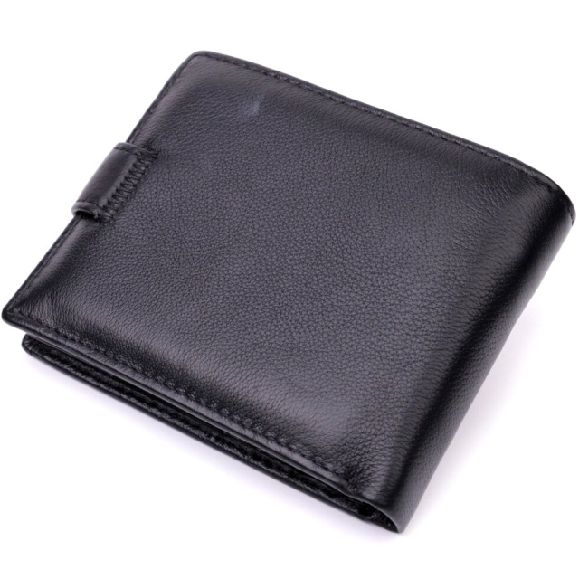 Містке портмоне для стильних чоловіків із натуральної шкіри найвищої якості. Аксесуар складається з двох містких відділень для купюр, кишені на блискавці, на всю довжину, дев'яти осередків для карт, двох прихованих кишень, двох кишень під плівкою та кишені для монет. Зовні виріб прошитий рівним рядком по краю і прикрашений тисненням логотипу компанії виробника. Портмоне доповнено надійною фурнітурою та міцною підкладкою. Запакований гаманець у фірмову картонну коробку білого кольору.