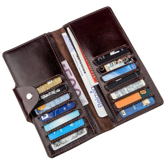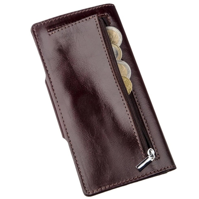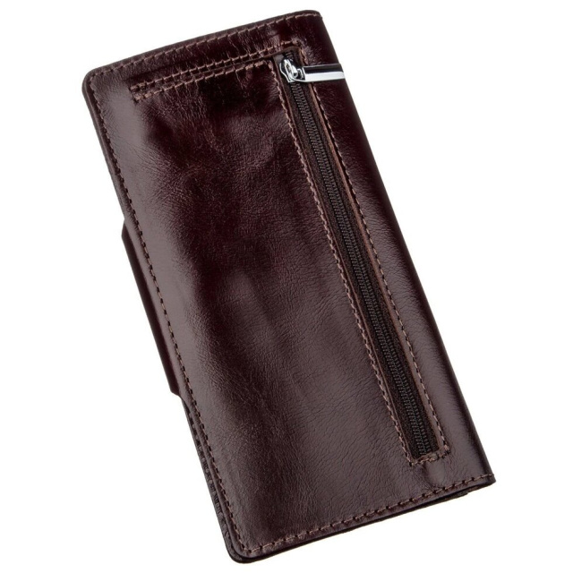 Гаманець з натуральної шкіри класичного коричневого кольору. Застібається на хлястик з кнопками. Модель має глянсове покриття. Досить оригінально виглядає. Багатий зовнішній вигляд. Зверху прошита рівним рядком в дизайн виробу. Має строгий витриманий дизайн в класичному стилі. Ідеально підійде для тих, хто любить стиль і оригінальність. Не займає багато місця у вашій сумці. Тонкий і одночасно місткий. Буде чудовим подарунком. Гаманець має високу зносостійкість до потертості і тріщин. Модель доступна в різних кольорах і типах шкіри. Ми впевнені, що гаманець здивує свого власника.