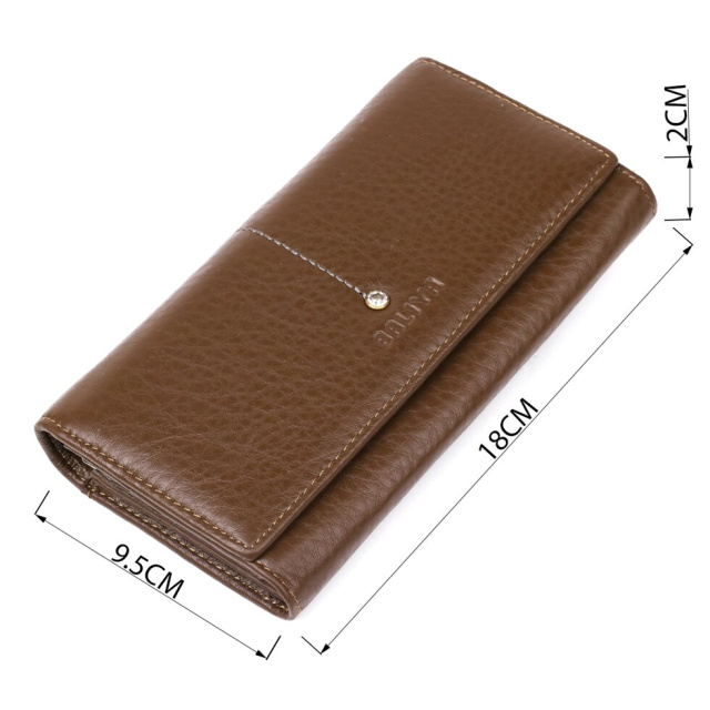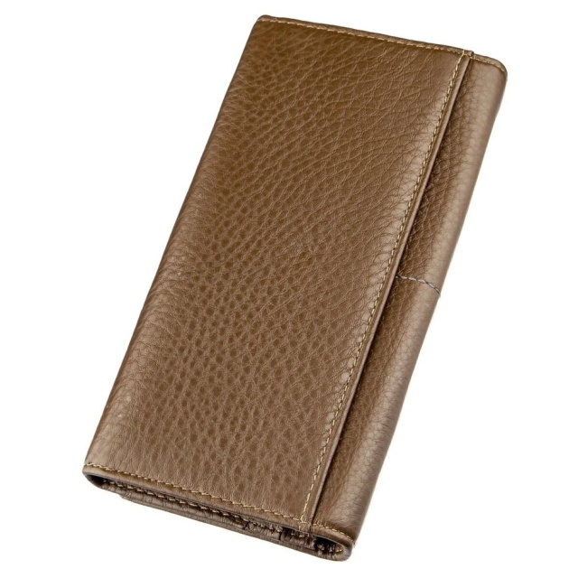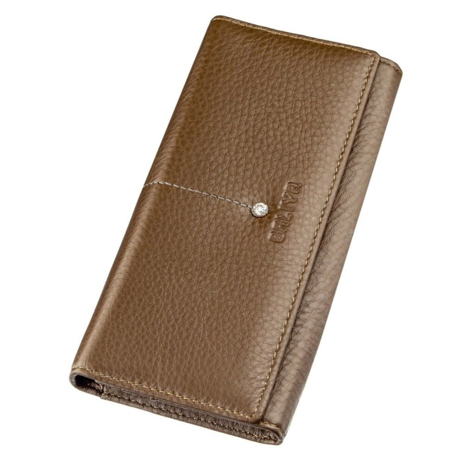 Стильний і в той же час лаконічний дизайн оцінить будь-яка дівчина. Гаманець виконаний в коричневому кольорі з зеленуватим відтінком. Модель горизонтального плану має оптимальний функціонал і правильно підібрані розміри. По краях аксесуар прошитий рівним рядком. Гаманець прекрасно підійде в якості подарунку для будь-якої дівчини. Виріб упаковано в картонну коробку червоного кольору.