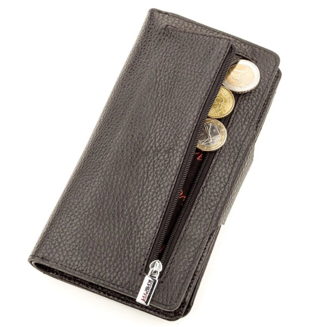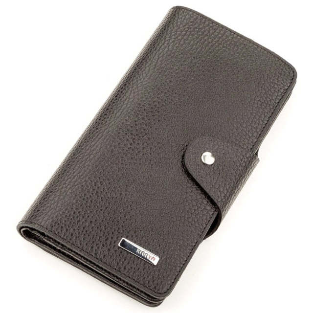 Містке портмоне унісекс чорного кольору з тисненою поверхнею.
