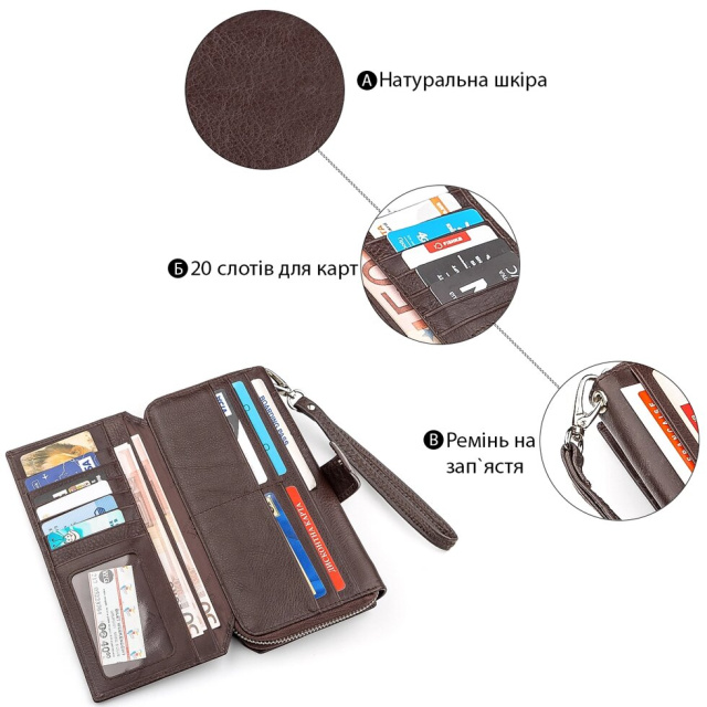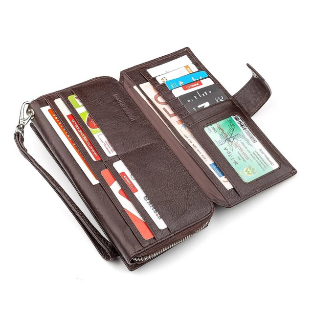 Багатофункціональний, шкіряний жіночий гаманець. У такий аксесуар з легкістю помістяться купюри будь-яких розмірів, кредитні картки та багато іншого, що потрібно сучасній дівчині. Якщо Ви шукаєте подарунок дівчині, то цей гаманець відмінне рішення, так як він поставляється в гарній коробочці.
