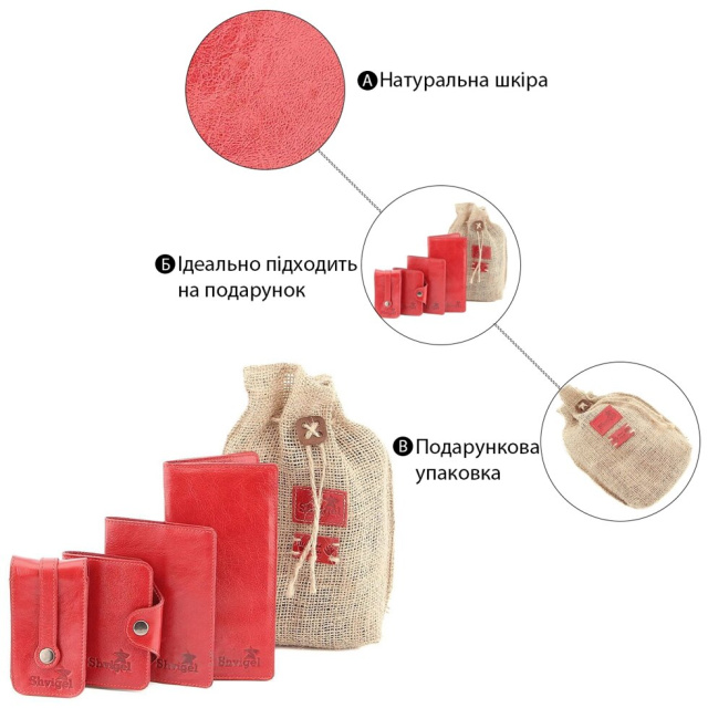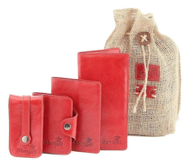 Чудовий жіночий подарунковий набір, червоного кольору, виготовлений з високоякісної натуральної шкіри. Складається набір з: