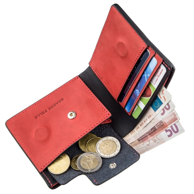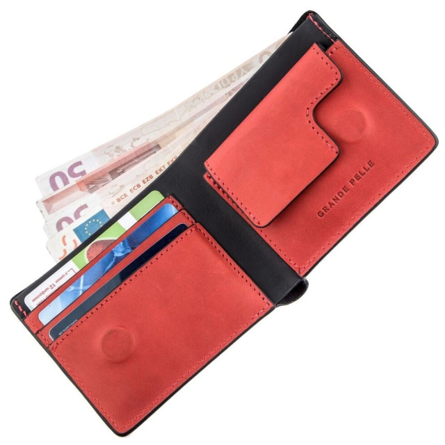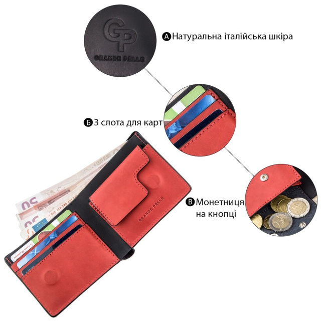 - 3 слота під кредитки з натуральної шкіри червоного кольору;