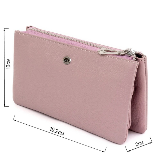 Дуже практичний місткий клатч з натуральної шкіри в надзвичайно стильному і оригінальному бузковому кольорі. Виріб складається з двох містких кишень на блискавці і кишеньки перегородки на блискавці. Особливістю даного клатча є те, що ви можете помістити в нього паспорт і мобільний телефон. Глибокі кишені дуже правильно і практично продумані дизайнерами. Виріб має легкий запах натуральної шкіри. Сам клатч м'який і приємний на дотик. Усередині клатч зроблений з натуральної шкіри і щільного текстилю. У комплекті йде фірмова коробка з логотипом бренду. Шкіряний клатч стане найкращим подарунком для будь-якої дівчини.