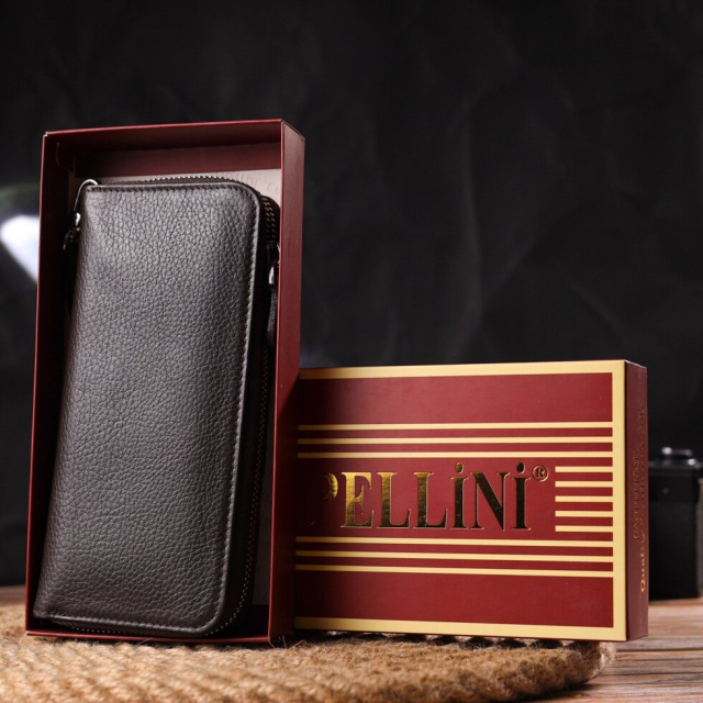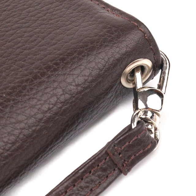 Місткий жіночий гаманець, з натуральної шкіри. Аксесуар має три основні відділення, в які поміщаються купюри всіх номіналів, дві перегородки, одна з них на блискавці, вісім кишень для карток, дві прилеглі кишені та знімний кистьовий ремінь. Закривається аксесуар на блискавку. Відмінний аксесуар, надійний виробник, який прослужить дуже довго.