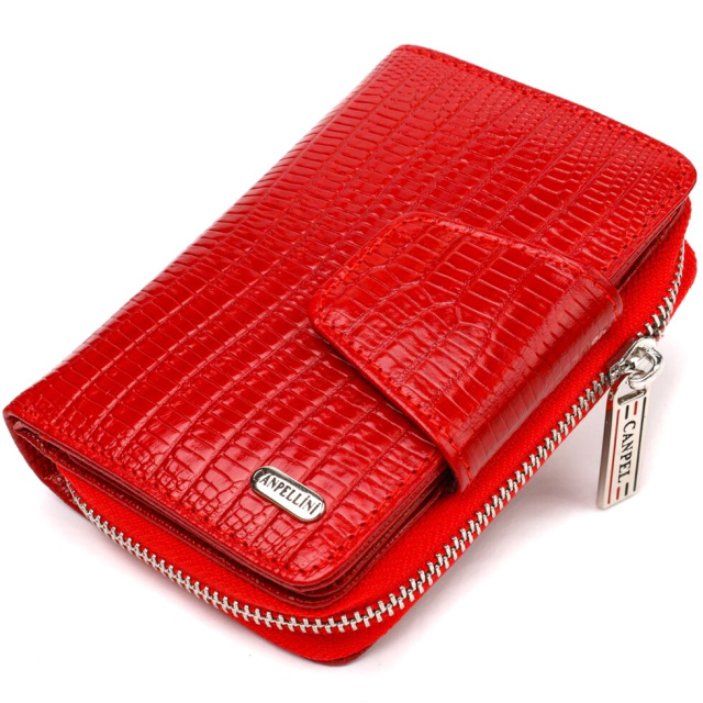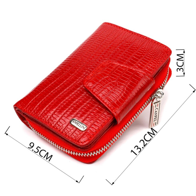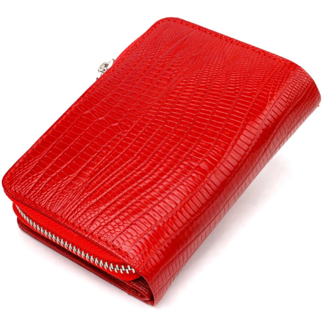 Чудовий жіночий гаманець вертикального типу із натуральної шкіри з тисненням. Аксесуар має відділення для купюр, вісім осередків для карток (два під сіточкою), дві прилеглі кишені та дві кишені на блискавках. Закривається аксесуар навпіл хлястиком на магніт. Купуючи шкіряний аксесуар цієї фірми собі або на подарунок, будьте певні, що він радуватиме око не один рік.