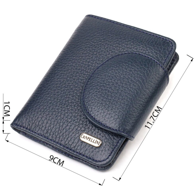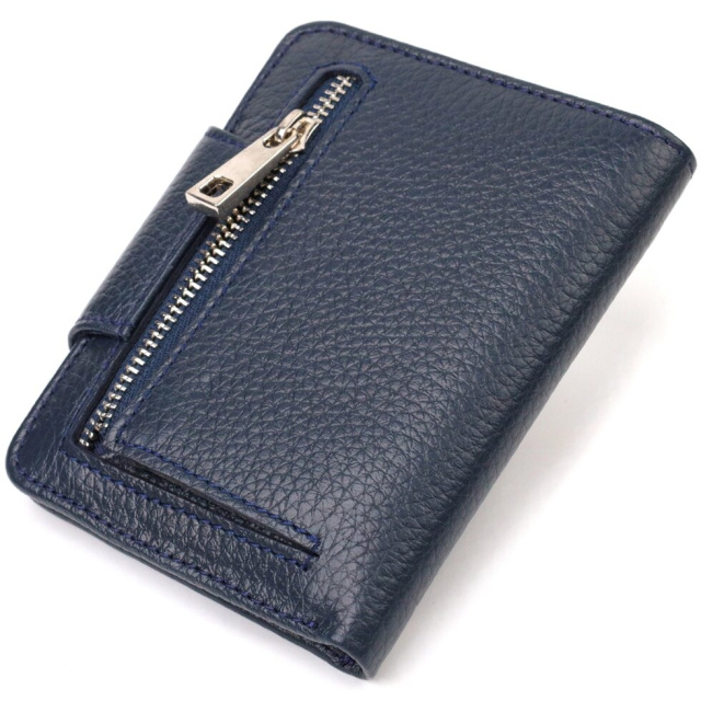 Стильний жіночий гаманець з натуральної шкіри флотар, яка характеризується своєю міцністю та зносостійкістю. Аксесуар складається з одного основного відділення з тканинною перегородкою, в яке поміщаються купюри всіх номіналів, чотирьох кишень для карток (одна під сіточкою), трьох прихованих кишень та монетниці. Закривається аксесуар навпіл хлястиком на кнопку. Купуючи шкіряний аксесуар цієї фірми, собі чи на подарунок, будьте певні, що він прослужить Вам не один рік.