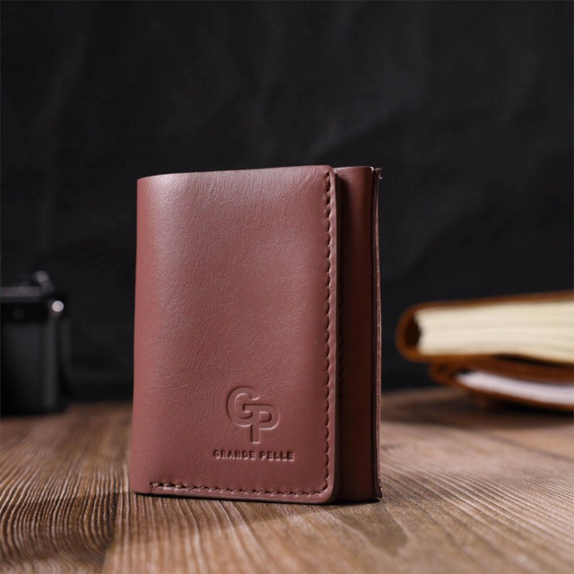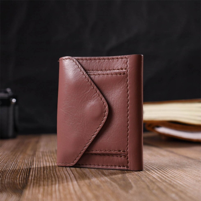 Компактне жіноче портмоне для тих хто цінує зручність, стиль та мінімалізм. Виконано виріб із натуральної висококласної шкіри з м'якою приємною фактурою. Усередині є просторе відділення для купюр та зручні слоти для пластикових карток, також зовні є монетниця, що закривається клапаном на магніт. Закривається аксесуар у три складення на магніт. Запаковано портмоне у фірмовий чохол.
