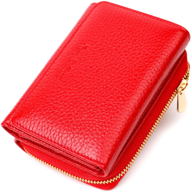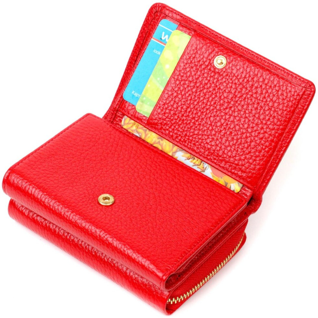 Практичний гаманець для жінок з натуральної шкіри. Аксесуар складається з відділення для купюр, восьми осередків для пластикових карток, трьох прилеглих кишень та монетниці. У виробі використано якісну фурнітуру. Закривається гаманець на кнопку. Купуючи якісний гаманець, Ви не тільки набуваєте стильної речі, але й отримуєте аксесуар, який прослужить не один рік.