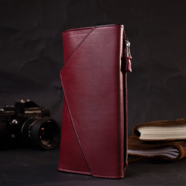 Розкішний жіночий гаманець, який також можна використовувати у вигляді клатчу. Виконаний аксесуар у гарному кольорі, тому підійде під будь-який одяг. Матеріал виготовлення – натуральна високоякісна шкіра з високою стійкістю до зношування. Наповнення представлене у вигляді трьох відділень на всю довжину, маленької кишеньки для дрібниць, що закривається на магніт, одинадцяти слотів для карток та монетниці зовні. Запакований аксесуар у фірмовий чохол.