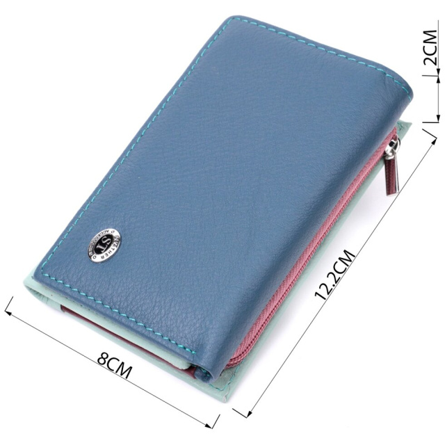 Компактне жіноче портмоне в три складання з натуральної шкіри найвищої якості. Перше, що впадає в око це колірне рішення, замість однотонного аксесуара ми маємо різнокольоровий, який містить два основні зовнішні кольори і кілька додаткових всередині. Шкіряне портмоне дуже практичне і служить досить довго. Аксесуар складається з двох містких кишень для купюр, кишені на блискавці через всю довжину, п'яти осередків для карт, прозорого віконця для пропуску та зовнішньої кишені на блискавці з перегородкою, що чудово прослужить для монет. Портмоне доповнено надійною фурнітурою. Укомплектований гаманець у фірмову картонну коробку білого кольору.
