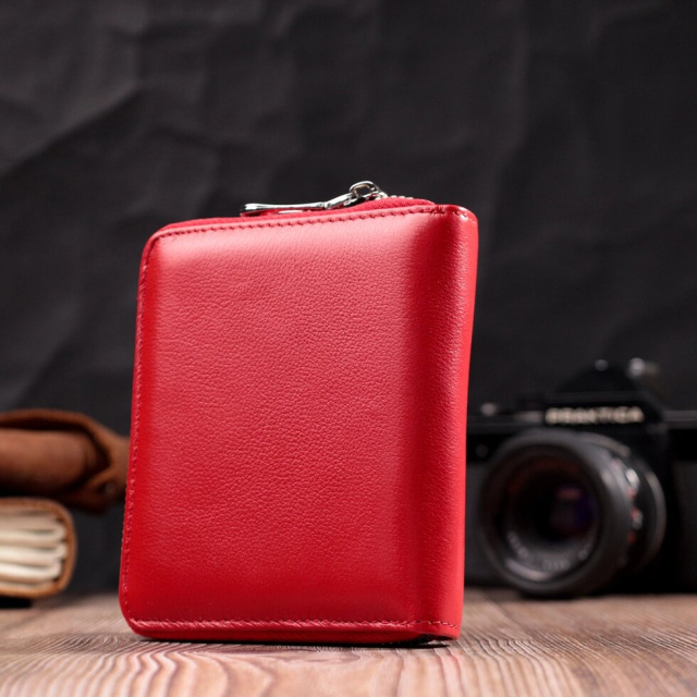 Відмінний гаманець для сміливих і стильних жінок, яким не далеке відчуття стилю. Аксесуар із натуральної якісної шкіри, він складається з двох містких відділень для купюр, кишені під плівкою, шести осередків для карт, чотирьох прихованих кишень та кишені для монет. Зовні виріб прикрашений тисненням логотипу компанії виробника. Портмоне доповнено надійною фурнітурою та міцною підкладкою. Запакований гаманець у фірмову картонну коробку білого кольору.