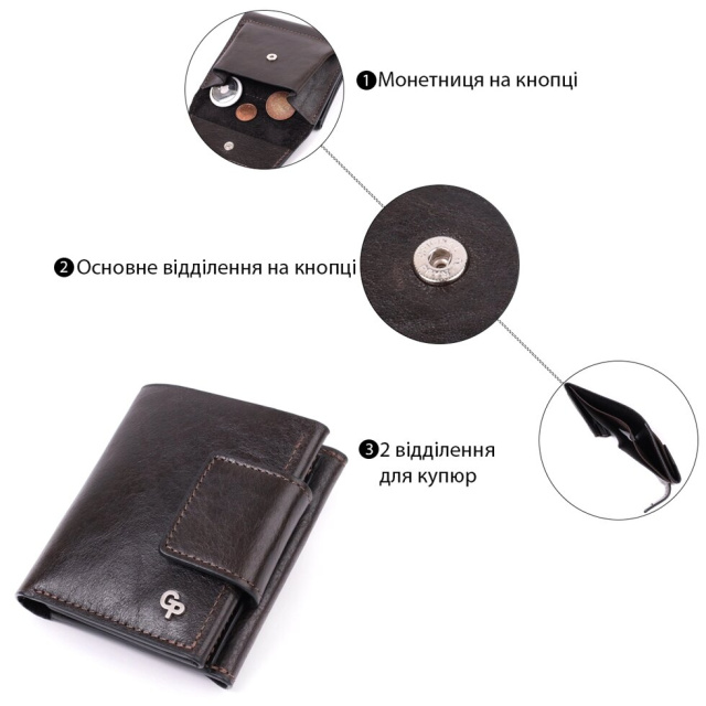 Портмоне унісекс, підійде як жінкам, так і чоловікам. Виріб виконаний виключно з натуральної італійської шкіри найвищої якості, яка має благородний блиск та приємну фактуру. Аксесуар складається з двох відділень для купюр, семи слотів для пластикових карток, трьох потайних кишень та монетниці на тильній стороні. По краях виріб прошито рівним рядком у дизайн виробу. Портмоне упаковано в стильну фірмову коробку, що дуже зручно, якщо аксесуар призначений на подарунок.