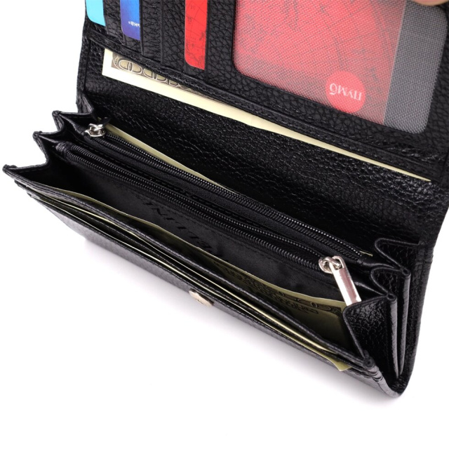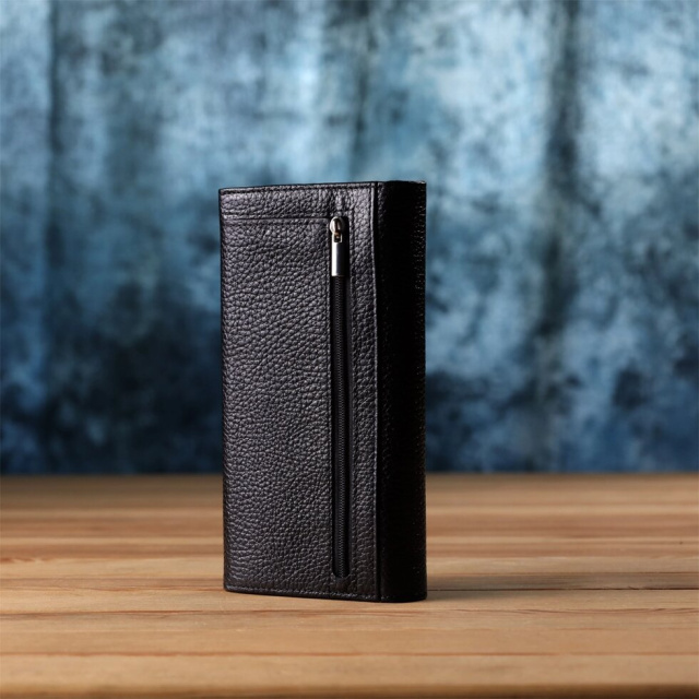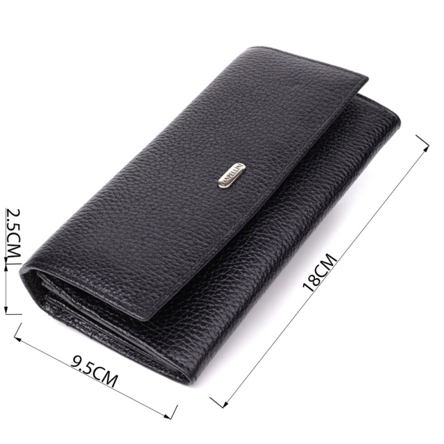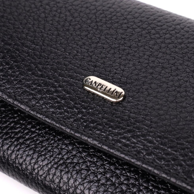 Елегантний гаманець CANPELLINI з натуральної чорної шкіри з виразною великозернистою фактурою стане надійним та практичним аксесуаром для сучасного чоловіка. Місткий, він має кілька відділень для купюр та карт, зручні кишені для дрібниць та монетницю на блискавці. Металевий фірмовий логотип підкреслює статус та оригінальність виробу.