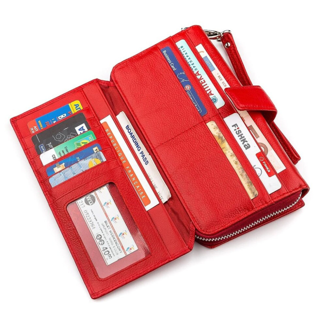 Багатофункціональний, шкіряний жіночий гаманець. У такий аксесуар з легкістю помістяться купюри будь-яких розмірів, кредитні картки та багато іншого, що потрібно сучасній дівчині. Якщо Ви шукаєте подарунок дівчині, то цей гаманець відмінне тому рішення, так як він поставляється в гарній коробочці.