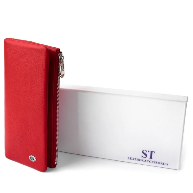 Гаманець вертикального типу з нової колекції. Колір - яскравий червоний. Виріб підійде для шанувальників яскравих аксесуарів. Матеріал виготовлення натуральна 100% шкіра. Усередині аксесуар має 3 кишені для купюр в розгорнутому вигляді, 12 слотів під пластикові картки. Зовні - бокова кишеня на блискавці, в який поміститься мобільний телефон невеликого розміру. Гаманець підкреслить ваше почуття стилю і відмінний смак. Зручно сидить в руці і прослужить вам далеко не один рік. Рекомендуємо вам дану модель в якості подарунка. У комплекті до гаманця йде фірмова коробка.