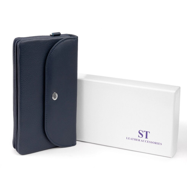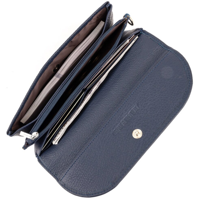 Місткий і стильний клатч з натуральної шкіри високої якості темно-синього кольору. Аксесуар ідеально підійде на вечірку. Модель оптимального розміру і носиться як в руках, так і на зап'ясті. Шкіра має природну текстуру і легкий запах. На лицьовій стороні металевий логотип бренду. У клатч з легкістю поміститься мобільний телефон і документи, а також інші особисті необхідні дрібниці. Аксесуар виконаний в гладкій шкірі. Місткі кишеньки зручно розмістять всі ваші особисті речі. Внутрішнє оздоблення: поєднання щільного чорного текстилю та натуральної шкіри. Аксесуар упакований в фірмову коробку. Клатч стане найкращим подарунком для будь-якої дівчини і найголовніше необхідним. Замовляйте на нашому сайті найякісніші аксесуари за вигідними цінами. Доступна модель в різних кольорах.