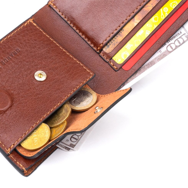 Популярна модель тепер і в коричневому кольорі. Два відділення для купюр, осередки для кредиток, монетниця на кнопці - все це створює практичний дизайн для сучасного чоловіка. Портмоне підійде для повсякденного життя або на подарунок. Аксесуар у блискучій гладкій шкірі, яка зовсім невибаглива в догляді. Доповнено портмоне якісною фурнітурою, яка буде вам довго служити. Аксесуар зручно лежить в руці, поміщається в кишеню або маленьку сумку. Упаковано портмоне в повстяний чохол.