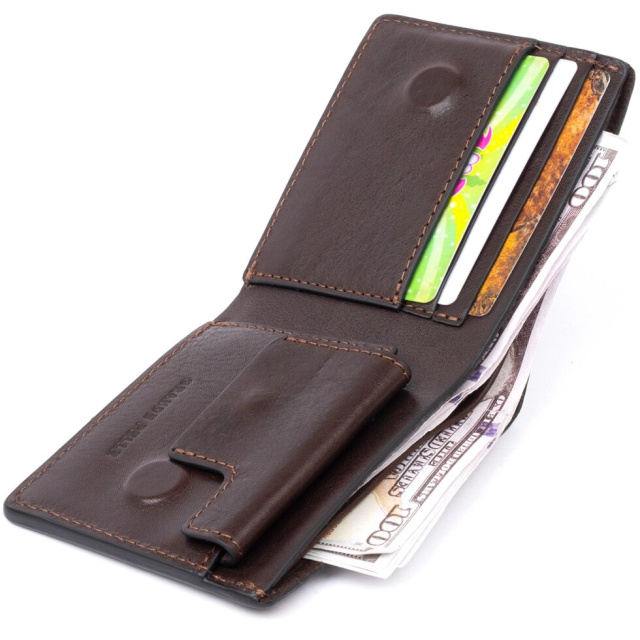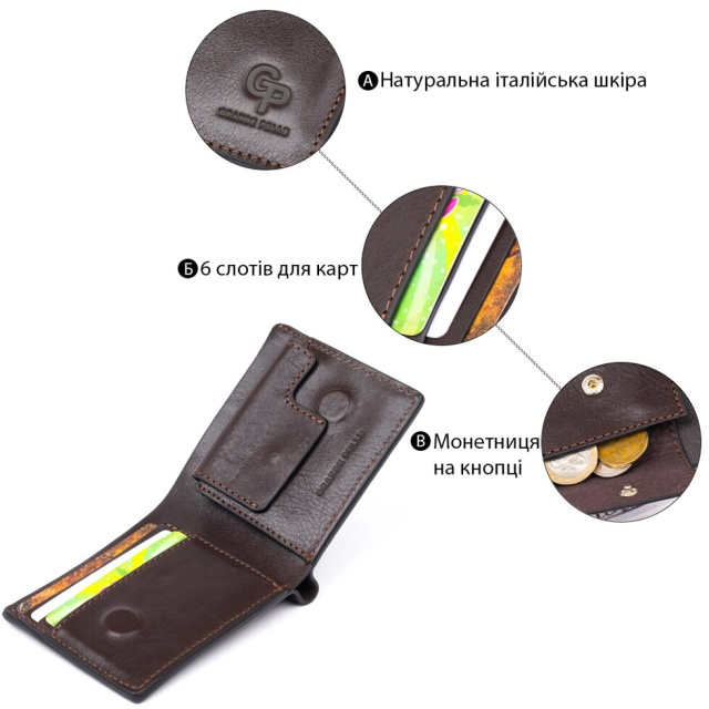 Популярна модель тепер і в коричневому кольорі. Два відділення для купюр, осередки для кредиток, монетниця на кнопці - все це створює практичний дизайн для сучасного чоловіка. Портмоне підійде для повсякденного життя або на подарунок. Аксесуар у блискучій гладкій шкірі, яка зовсім невибаглива в догляді. Доповнено портмоне якісною фурнітурою, яка буде вам довго служити. Аксесуар зручно лежить в руці, поміщається в кишеню або маленьку сумку. Упаковано портмоне в повстяний чохол.