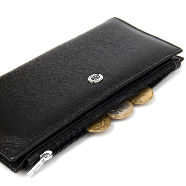 Хороший добротний жіночий гаманець на кожен день в класичному чорному кольорі. Виготовлений з м'якої і приємної на дотик натуральної шкіри, яка має відмінні експлуатаційні характеристики. Наповнення даної моделі порадує своєю практичністю і функціональністю. Такий гаманець стане бажаним подарунком для жінок будь-якого віку і соціального статусу.