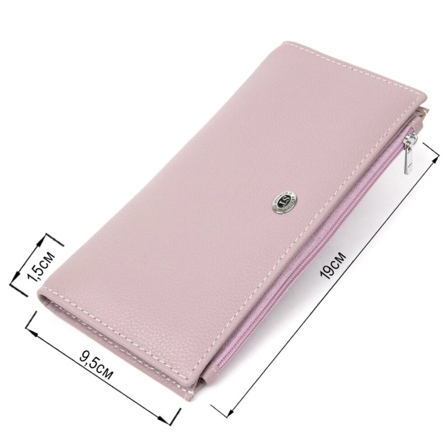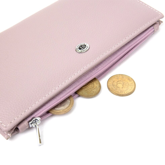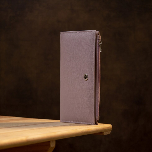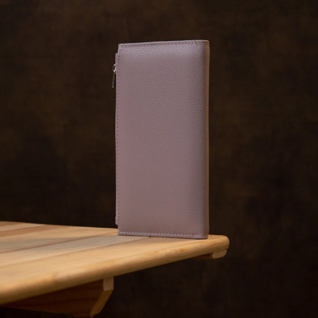 Всім, хто шукає гарний і функціональний жіночий гаманець благородного блідо-лілового кольору, необхідно звернути свою увагу на дану модель. Цей шкіряний виріб має достатню кількість відділень для купюр і карток, а також монетницю на блискавці на тильній стороні, що дуже зручно. Гаманець упакований в фірмову тверду білу коробку, тому стане не тільки відмінним придбанням для вас, але і хорошим подарунком для близької людини.