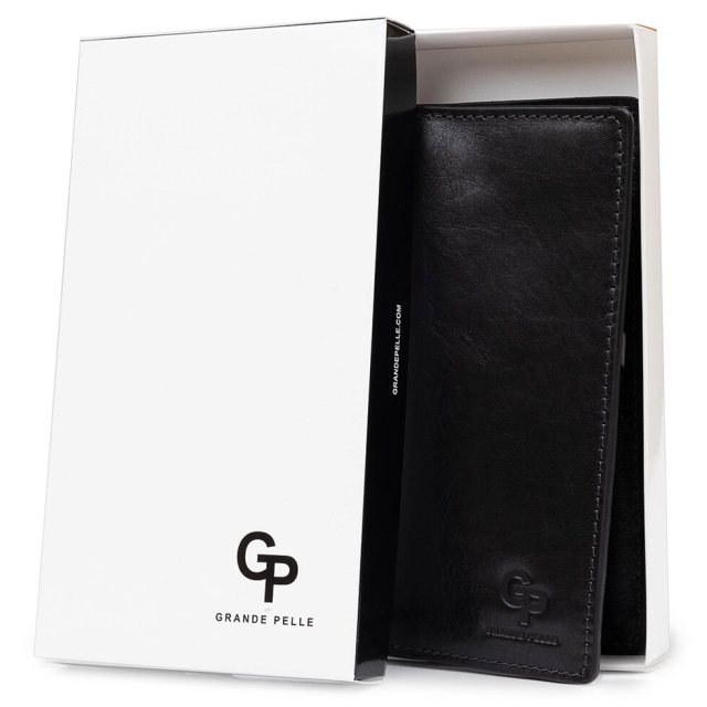 Відмінне портмоне для чоловіків з висококласної натуральної шкіри, стійкої до зносу. Має гладку і глянсову фактуру, дуже приємну на дотик. Усередині розташувалися місткі відділення для купюр і чотирнадцять слотів для кредитних або візитних карток. Упакований гаманець в фірмову картонну коробку.