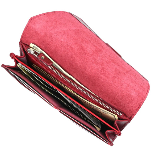 Чудовий жіночий гаманець із натуральної висококласної шкіри від відомого українського виробника. Внутрішнє наповнення представлене у вигляді трьох відділень на всю довжину, монетниці на блискавці та слотів для пластикових карток. Закривається виріб на скошений клапан із магнітом, що дуже зручно та практично. Упакований гаманець у фірмову картонну коробку.