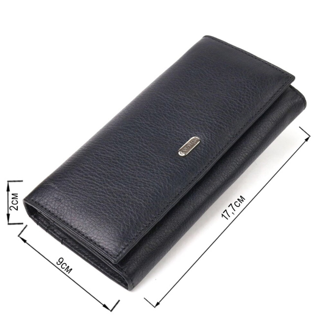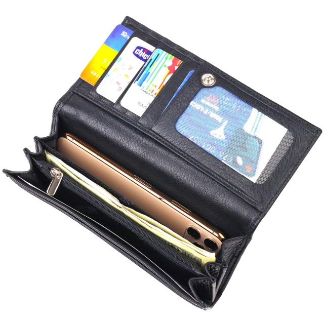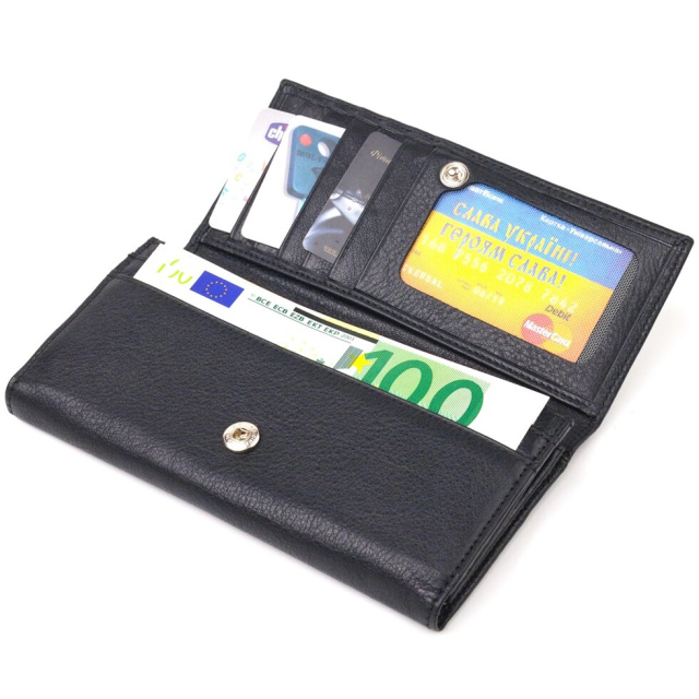 Класичний жіночий гаманець із натуральної шкіри. Аксесуар має три широкі відділення для купюр, з двома перегородками, одна перегородка закривається на блискавку, містку монетницю зовні, чотири приховані кишені та шість кишень для карток. Закривається аксесуар клапаном на кнопку. Якщо Ви хочете порадувати себе та здивувати близьких, то неодмінно купуйте шкіряні аксесуари в нашому магазині, якість і ціна Вас однозначно порадує.