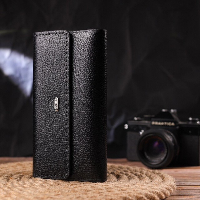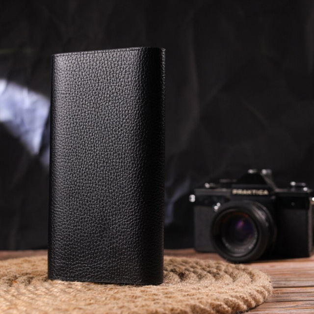 Стильний жіночий гаманець із натуральної зернистої шкіри. Аксесуар має три відділення для купюр, монетницю, що закривається на блискавку, дві приховані кишені та дванадцять кишень для карток. Закривається аксесуар клапаном на магніти. Краї клапана декоровані рівним прошитим рядком у колір виробу. Якщо Ви хочете порадувати себе та здивувати близьких, то неодмінно купуйте шкіряні аксесуари в нашому магазині, якість і ціна Вас однозначно порадує.