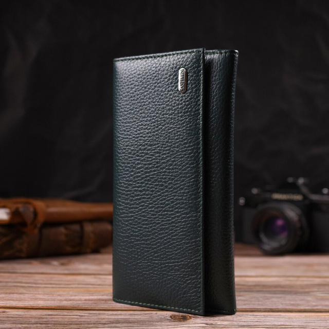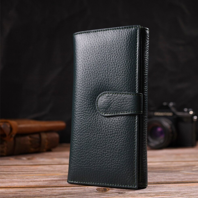 Практичний гаманець для стильних жінок із натуральної шкіри. Аксесуар має одне основне відділення, сімнадцять кишень для карток, чотири прилеглі кишені та монетницю. Особливістю даної моделі є наявність блоку для кредитних карток, який закривається хлястиком на кнопку. На лицьовій стороні, у правому нижньому куті металевий логотип компанії виробника. Якщо ви вибрали товар цієї фірми, можете не сумніватися, що виріб прослужить дуже довго і не втратить свого первісного вигляду.