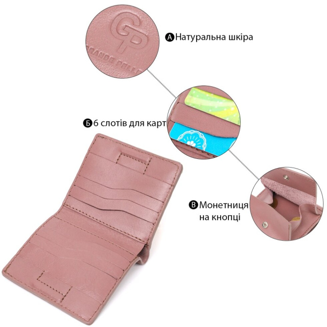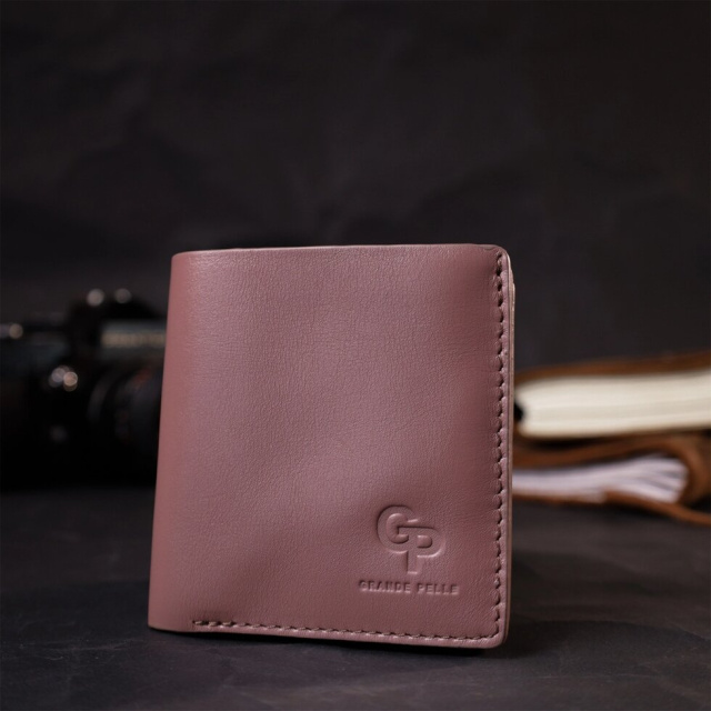 Компактний гаманець для жінок із натуральної високоякісної шкіри. Має гарний пудровий колір та гладку фактуру. Внутрішнє наповнення добре продумане та практичне. Запакований цей гаманець у фірмову картонну коробку з логотипом бренду. Ми впевнені, що вироби української фірми Grande Pelle, нікого не залишать байдужими, і Ви ще неодноразово повернетесь за цими якісними шкіряними аксесуарами.