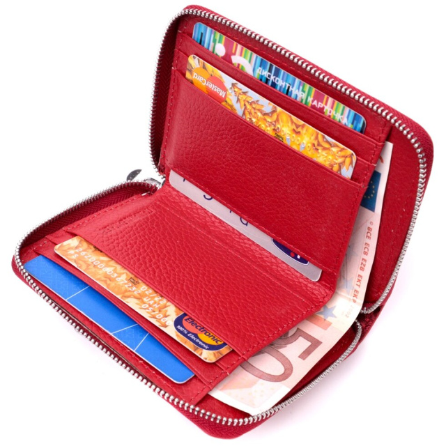 Гаманець для жінок середнього розміру із натуральної шкіри найвищої якості. Аксесуар складається з двох містких відділень для купюр, шести осередків для карт, двох прихованих кишень та зовнішньої кишені на блискавці, що чудово прослужить для монет. Зовні виріб прошитий рівним рядком по краю і прикрашений тисненим логотипом компанії виробника, який розміщений вгорі по середині. Портмоне доповнено надійною фурнітурою та міцною підкладкою. Укомплектований гаманець у фірмову картонну коробку білого кольору. Виріб стане ідеальним подарунком для дівчини будь-якого віку.