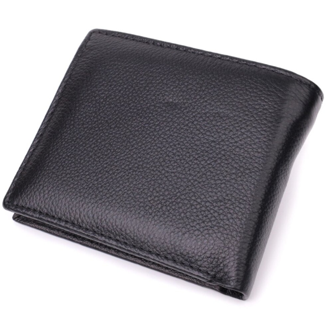 Компактний чоловічий гаманець для стильних чоловіків. Аксесуар з натуральної шкіри, він складається з двох містких відділень для купюр, кишені на блискавці, однієї кишені під плівкою, шести осередків для карток, двох прихованих кишень та кишені для монет. Портмоне доповнено надійною фурнітурою та міцною підкладкою. Запакований гаманець у фірмову картонну коробку білого кольору.