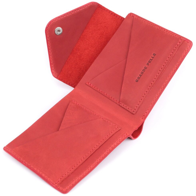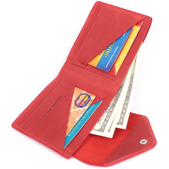 Яскраве горизонтальне портмоне, виготовлене тільки з натуральної шкіри найвищої якості, без тканинної підкладки. Виріб виконаний у вінтажній шкірі, яка має підвищену міцність завдяки оригінальній фінішній обробці "крейзі хорс". Фішкою цього гаманця є трикутний клапан зверху, на який закривається аксесуар. Дане портмоне ідеальний варіант для сучасної людини, яка вважає за краще носити мінімум готівки і вибирає картки. Портмоне упаковане у фірмову коробку. Дане портмоне стане найкращим подарунком для ваших близьких.