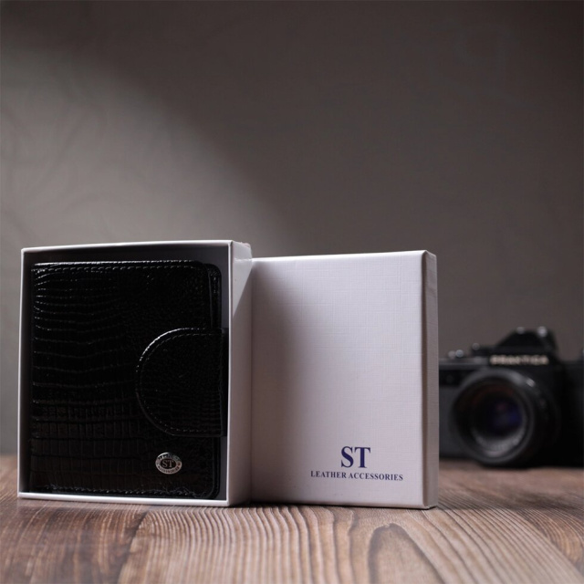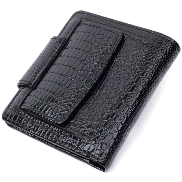 Практичний гаманець для жінок середнього розміру із високоякісної лакованої шкіри із тисненням під рептилію. Має все необхідне, щоб стати Вам незамінним аксесуаром у повсякденному житті. Ви легко помістите в нього паперові купюри, монети, документи, картки. На лицьовій стороні, у правому нижньому кутку розташований металевий логотип виробника, що є запорукою якості виробу. Запакований аксесуар у білу щільну картонну коробку з фірмовим логотипом.