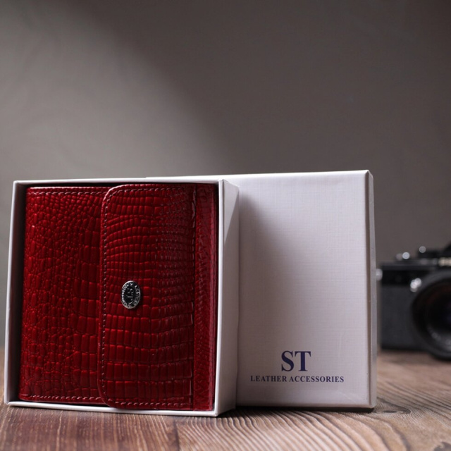 Яскравий гаманець середнього розміру з натуральної шкіри високої якості, з тисненням під рептилію.Зовні виріб прошитий рівним рядком по краю і прикрашений металевим логотипом компанії виробника, який розміщений на клапані посередині.Портмоне доповнено надійною фурнітурою та міцною підкладкою. Укомплектований гаманець у фірмову картонну коробку білого кольору. Виріб стане ідеальним подарунком для дівчини будь-якого віку.