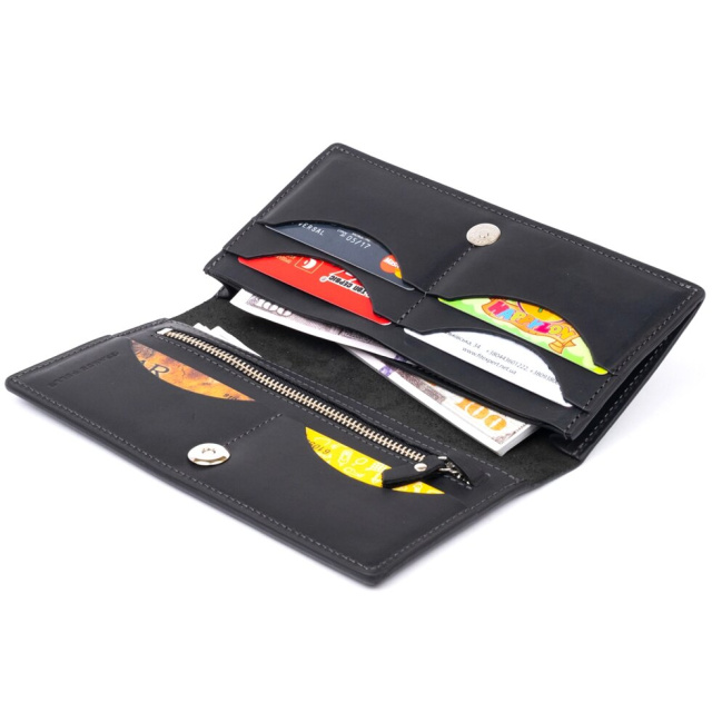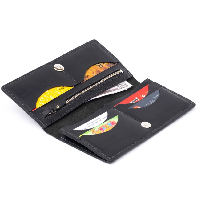 Якісний гаманець унісекс вертикального типу в вінтажній шкірі. Родзинкою даного типу шкіри є ефект вінтажності - старовини, який з'являється в процесі експлуатації. Згодом на поверхні з'являються подряпини і потертості. Аксесуар виглядає дуже дорого. Підійде гаманець для ділових людей. У такий аксесуар зручно розташувати купюри в розгорнутому вигляді і картки. Рекомендуємо дану модель, якщо ви любите порядок. У комплекті до гаманця фірмова коробка.