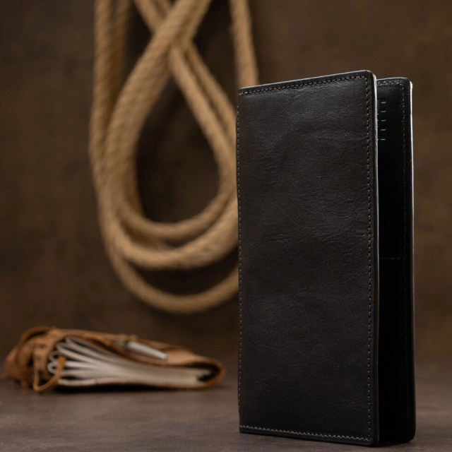 Незвичайне портмоне унісекс в чорному глянсовому кольорі. Виконано воно з високоякісної натуральної шкіри. Всередині є місткі відділення для купюр, чотирнадцять кишеньок для різних карт і візиток, а також одна кишеня - прозора для фото або ін .. На зовнішній стороні присутня блискавка, під якою Ви знайдете ще два великих відділення для купюр, цінних паперів або дрібниць.