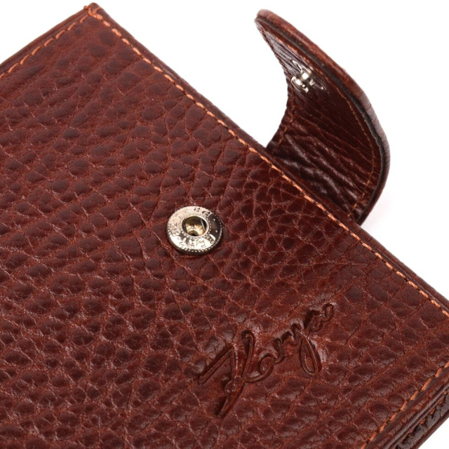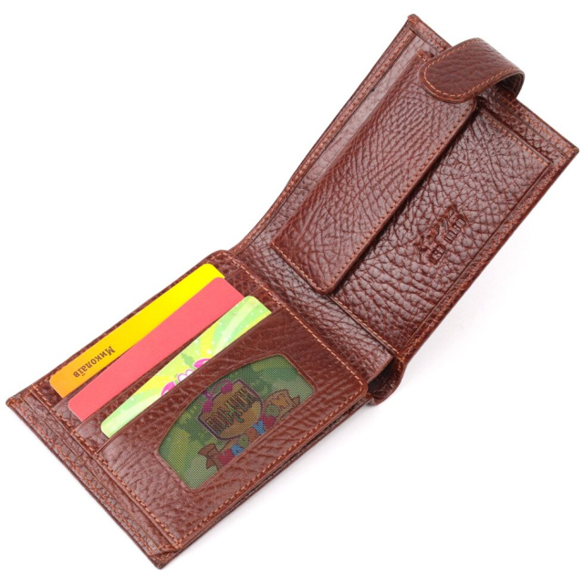 Стильний чоловічий гаманець із натуральної шкіри. Виріб закривається хлястиком на кнопку. Виріб має місткі відділення для купюр і всередині достатньо осередків для кредиток. Виріб упакований у фірмову коробочку. Вироби з натуральної шкіри завжди будуть чудовим подарунком для близької людини.